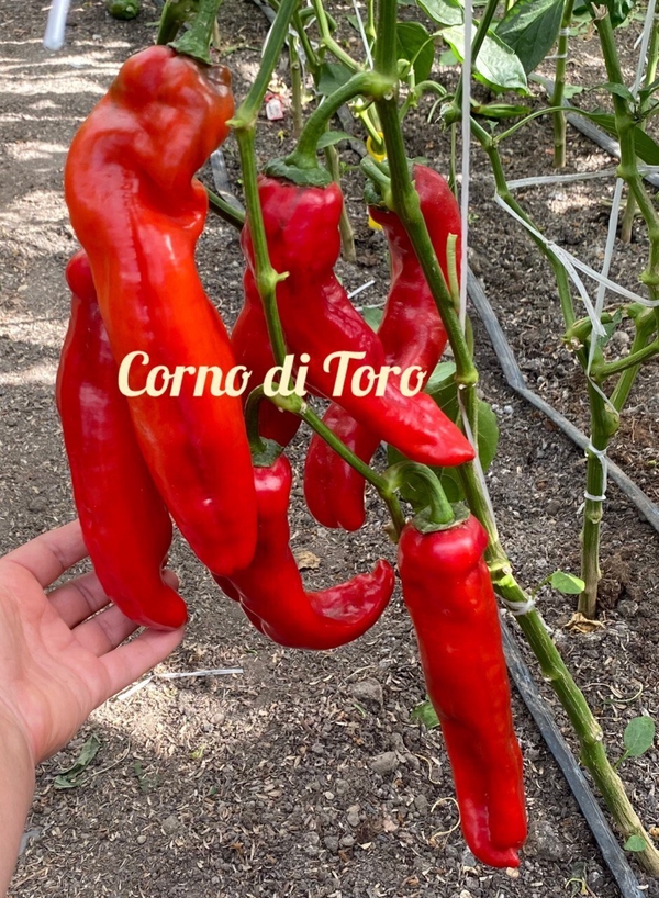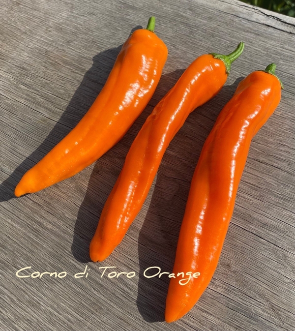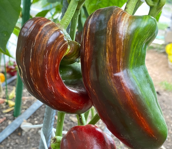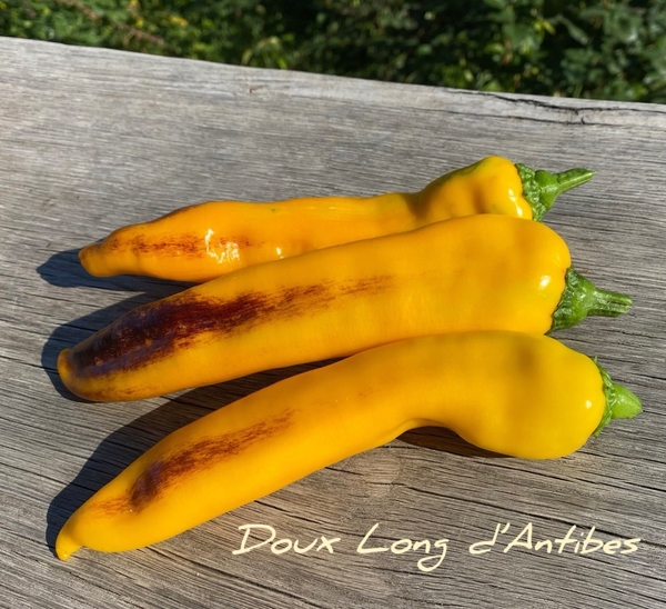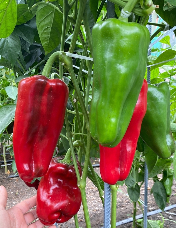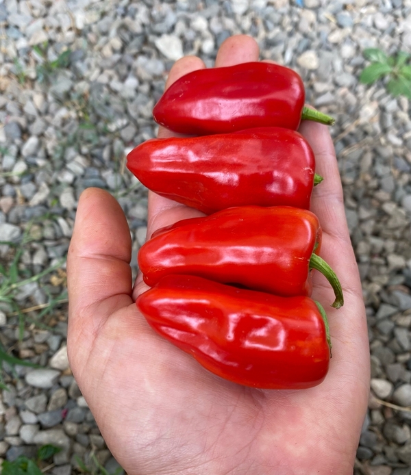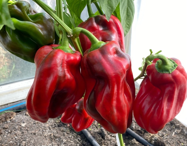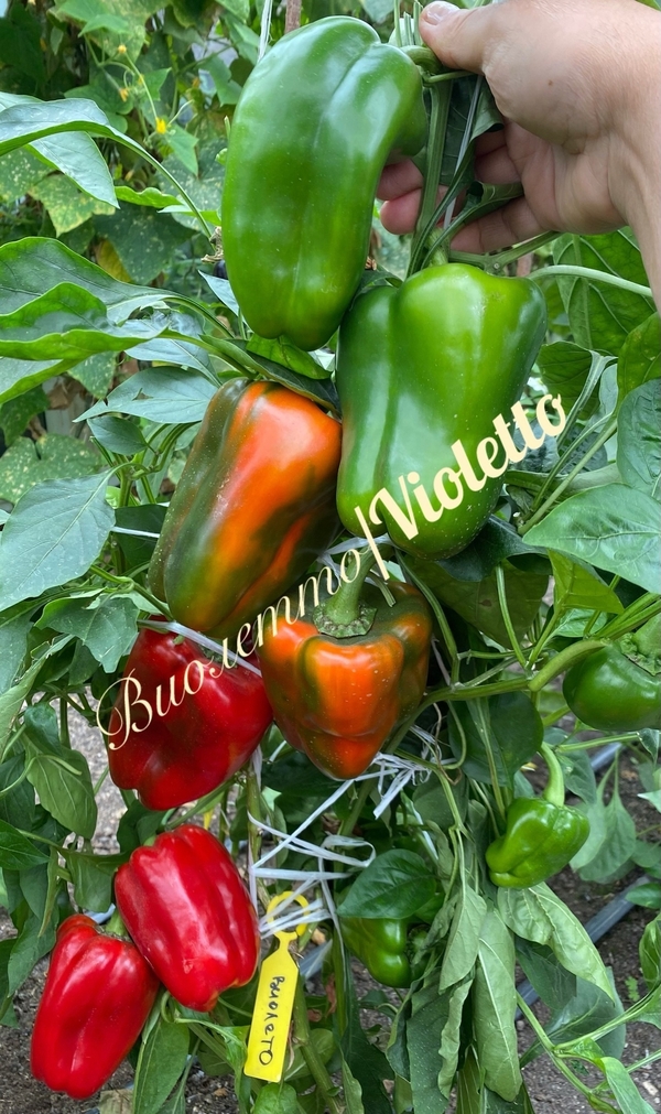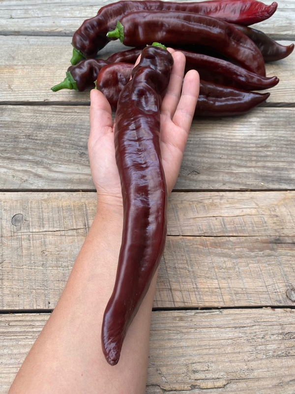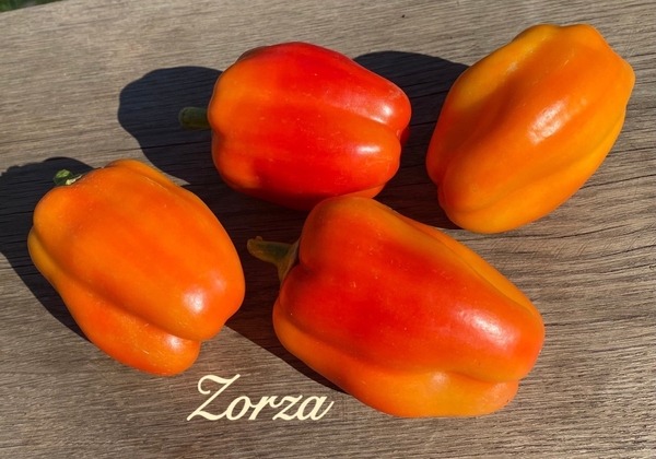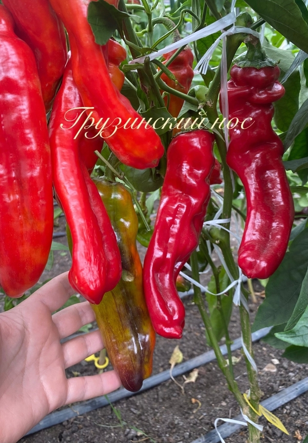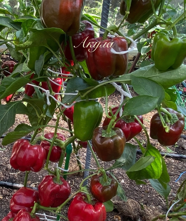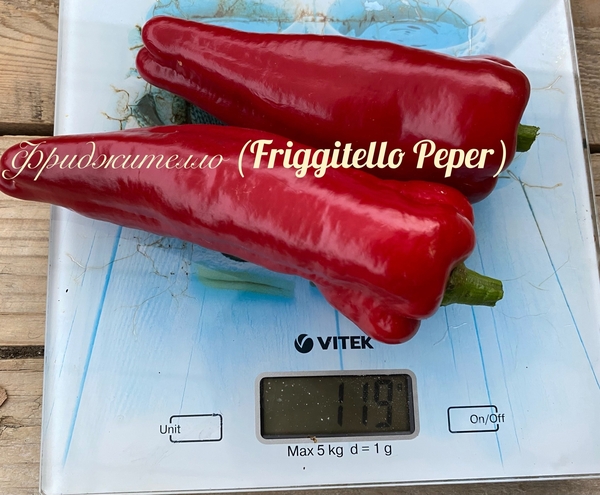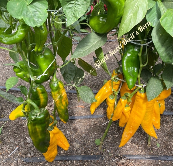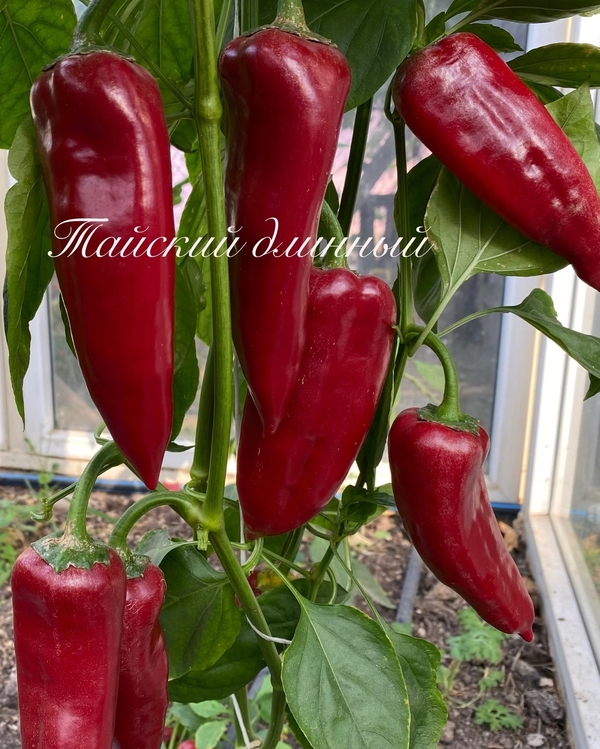 Высокорослый, ранний. Плоды длинной до 30 см., созревают от бледно-желтого до оранжево-красного цвета. Очень ароматный. Идеален для жарки, гриля, пиццы. Урожай потрясающий — куст стоит как на подпорках.