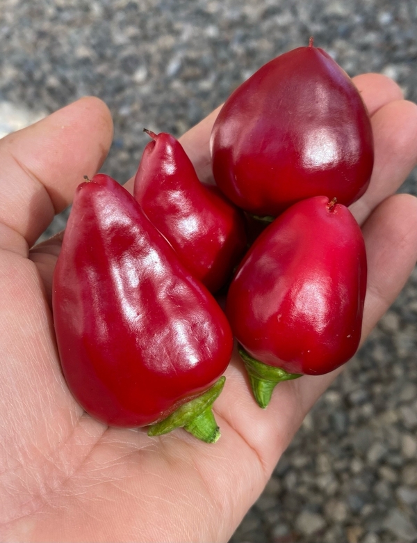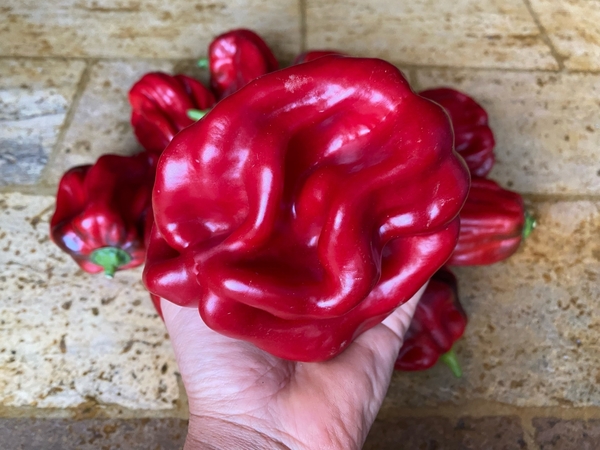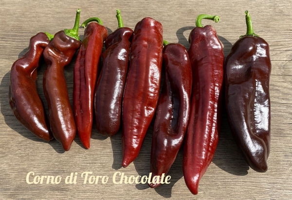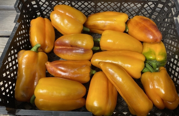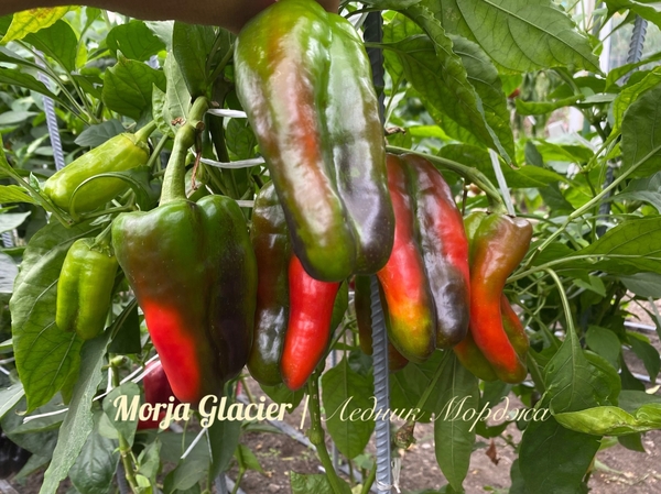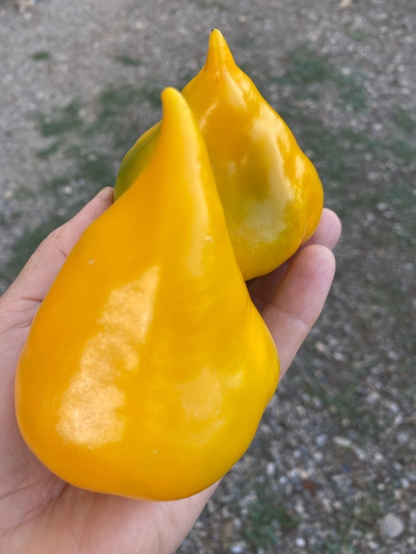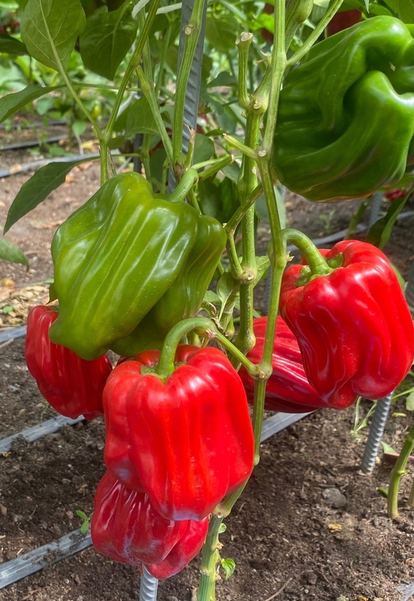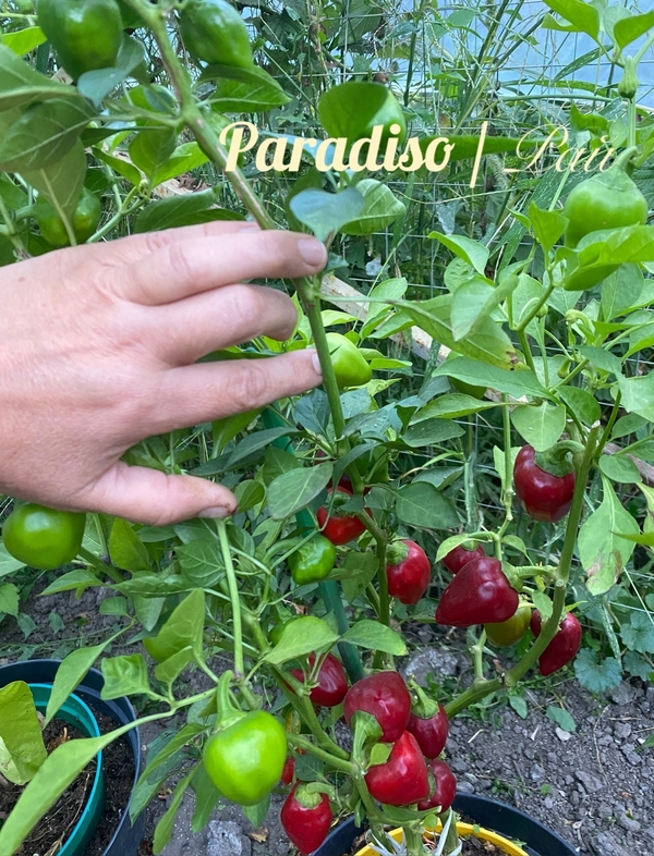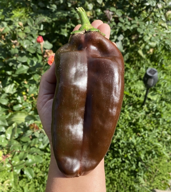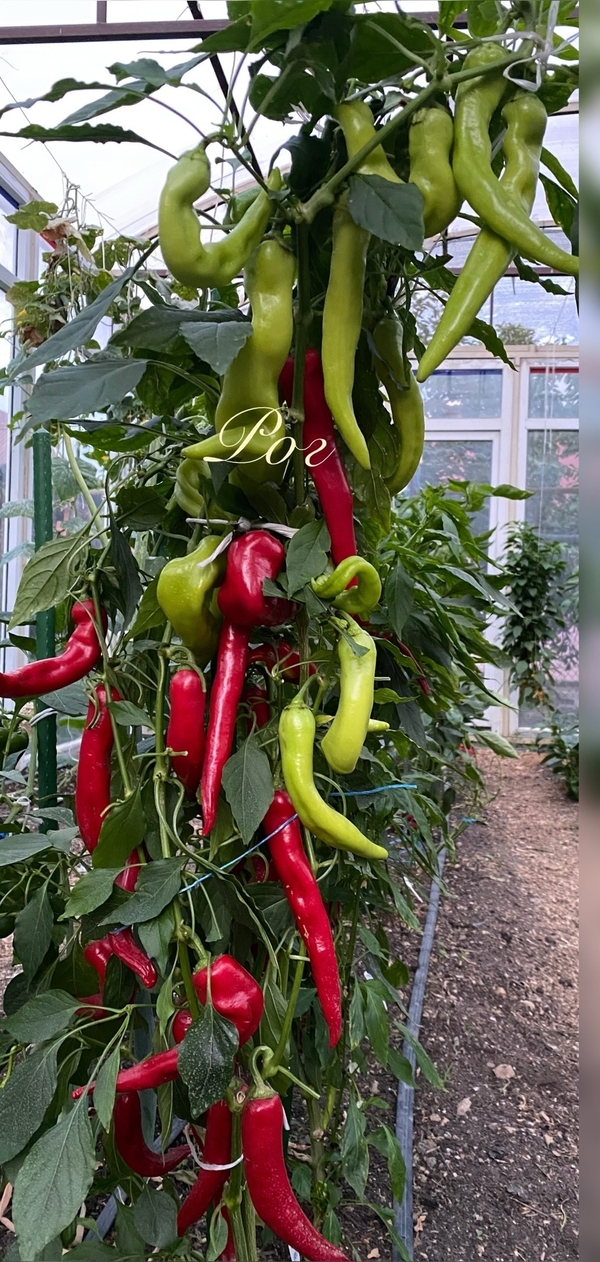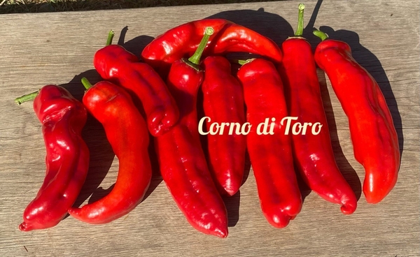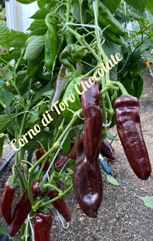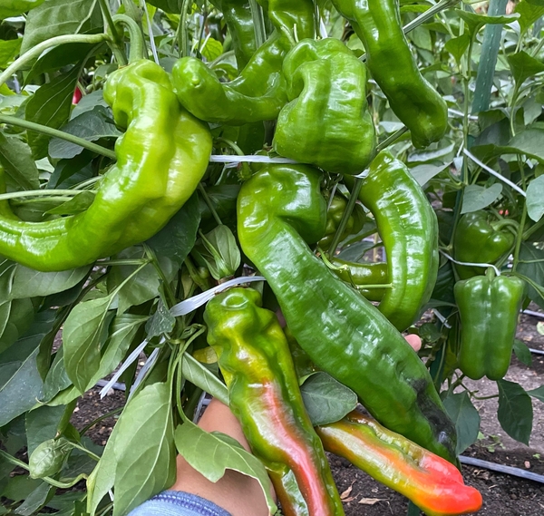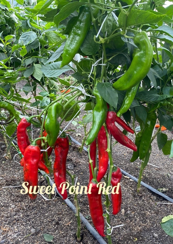 Высокорослый, ранний. Плоды длинной до 30 см., созревают от бледно-желтого до оранжево-красного цвета. Очень ароматный. Идеален для жарки, гриля, пиццы. Урожай потрясающий — куст стоит как на подпорках.