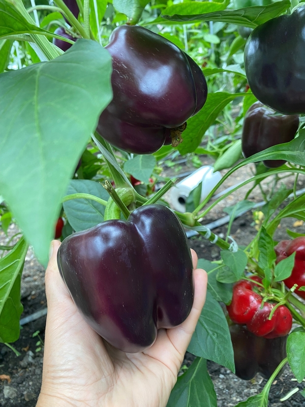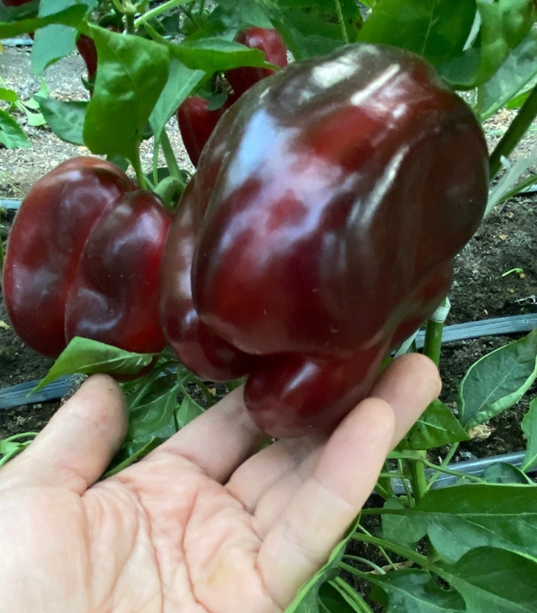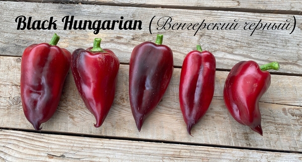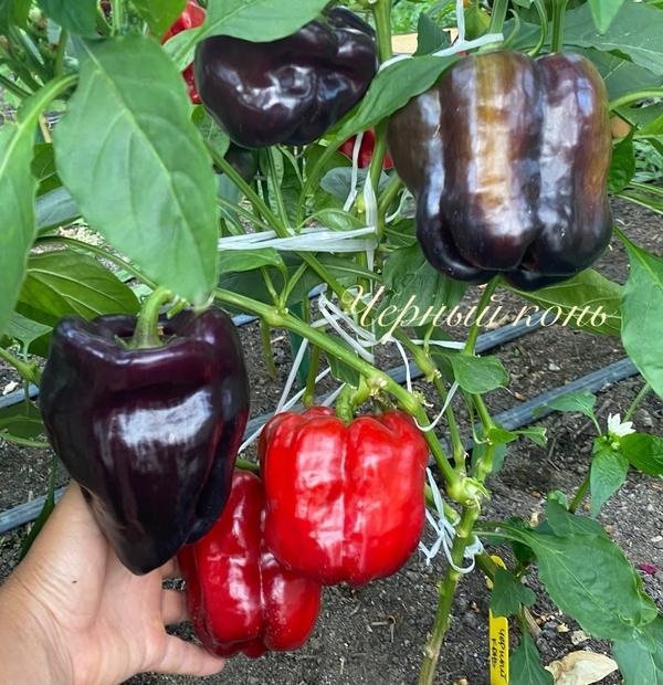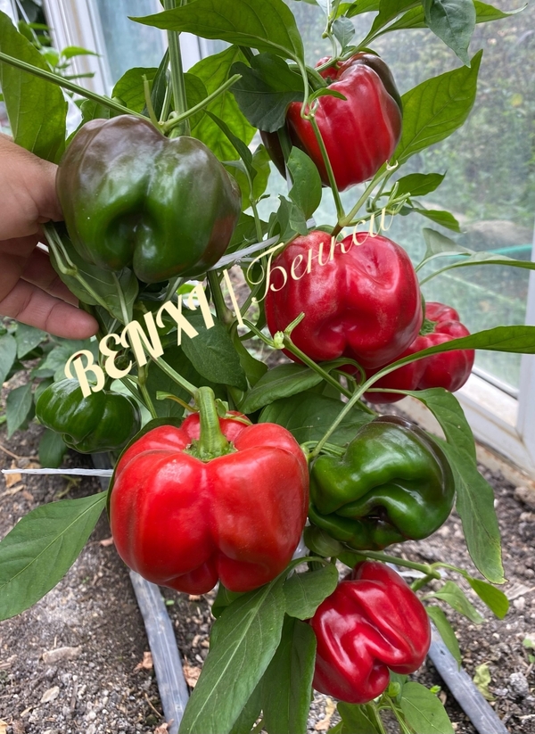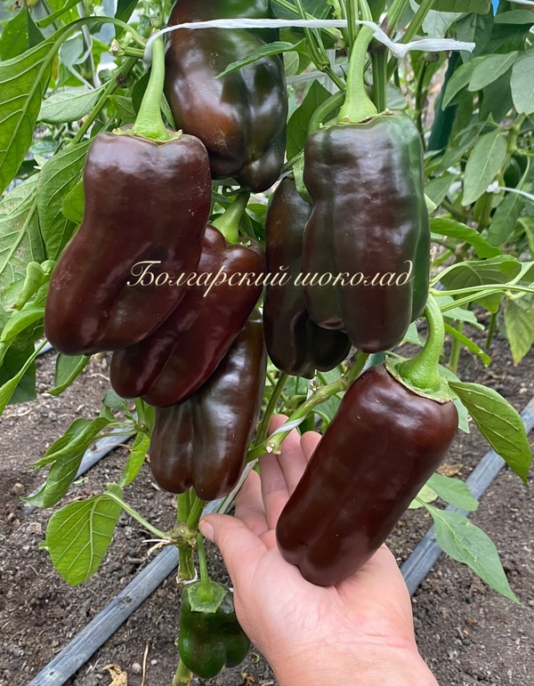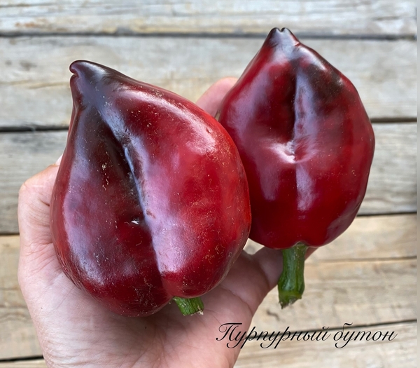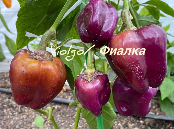 Великолепный сорт сладкого перца с крупными (до 300 грамм) плодами и толстой и сочной стенкой. По мере созревания меняет окраску с фиолетовой до красной или малиновой. Сорт урожайный , рос в теплице , высота 70 см . Все перцы одинаковые по 220 - 250 г.