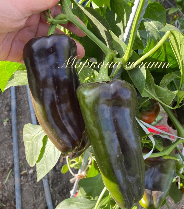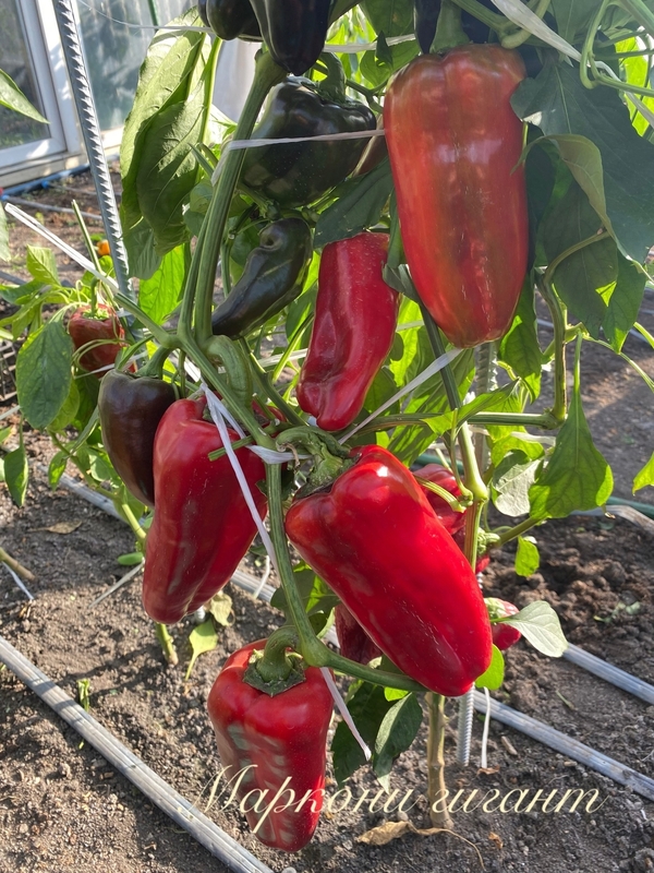 Высота 80 см, среднеранний, вес 200 гр и выше, стенка толстая, один из трех посаженных кустов дал созревание через фиолетовый, но оказался значительно урожайнее тех, которые созревали через темно-зеленый, все остальные призраки Маркони гиганта сохранены