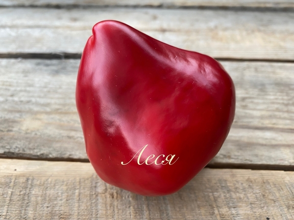 Раннеспелый, низкорослый. Плоды среднего размера, сердцевидной формы, с носиком. Глянцевые, мясистые, толщина стенки 8-10 см. Со сладким вкусом, вес около 150 гр. Назначение универсальное.