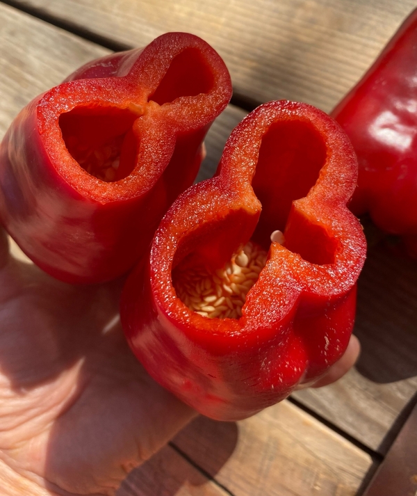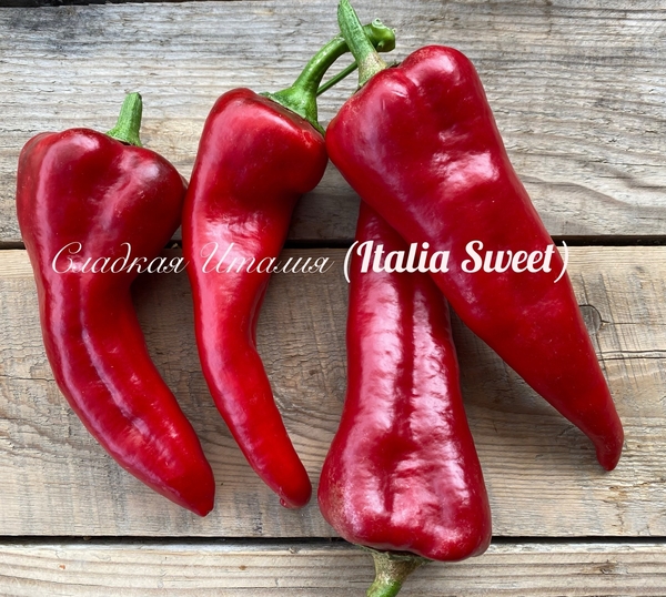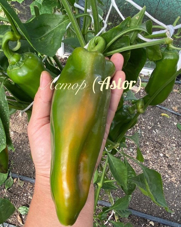 Среднеспелый, высокорослый. Плоды длинные призмы с толстыми стенками, масса 200 гр., цвет меняется от светло-салатового до красного. Тип Кубанеле (хрустящие сладкие стенки). Идеально подходит для жарки, салатов, заготовок. Урожайность очень высокая