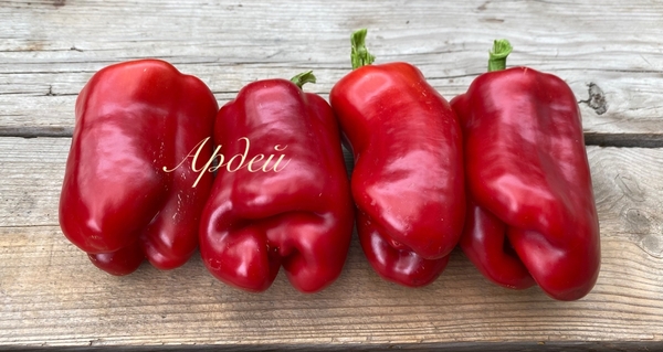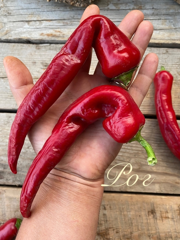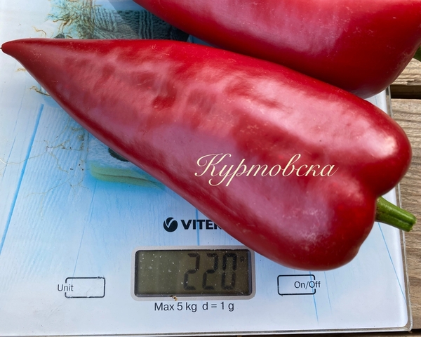 Средне-ранний, низкорослый. Плоды крупные в форме рога красного цвета, массой 150 гр., стенка толстая, очень ароматные. Очень урожаен. Подходит для салатов, гриля, заготовок.
