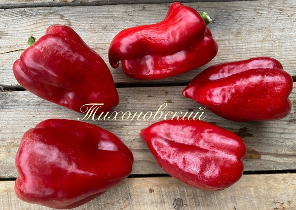 Среднерослый, средне-ранний. Плоды темного красного цвета, призмовидной формы, длинные, массой 200 гр., стенка толстая. Нуждается в подвязке ( загружается хорошо , сломал стволы ) плодоносит постоянно , волны разделить нельзя.