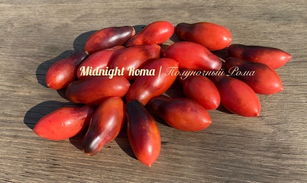 Высота 0,6 м., среднеранний. Плоды сливовидной формы с небольшими гранями, ярко-красные. Масса 60-90 гр. В плодах никогда не бывает белой тяжистости, хороший сорт для консервирования. Всегда урожайный.