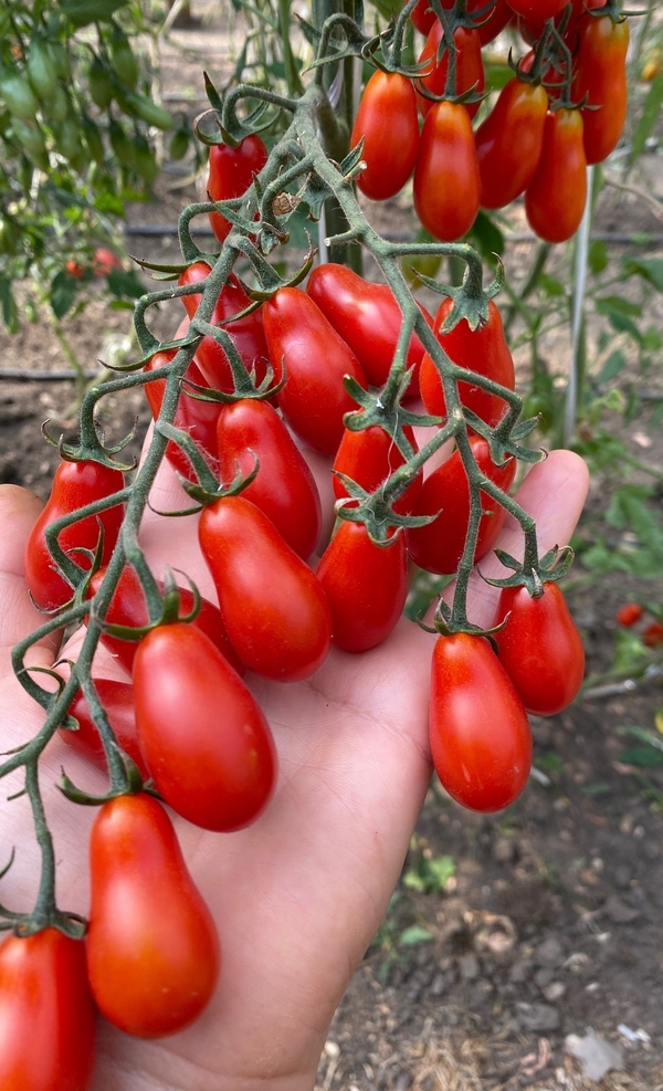 Высокорослый,раннеспелый ,выращивала без пасынкования, очень сладкие томатики в форме пальчика, очень много на кустах,25 -40 гр , в кистях по 5-6 плодов