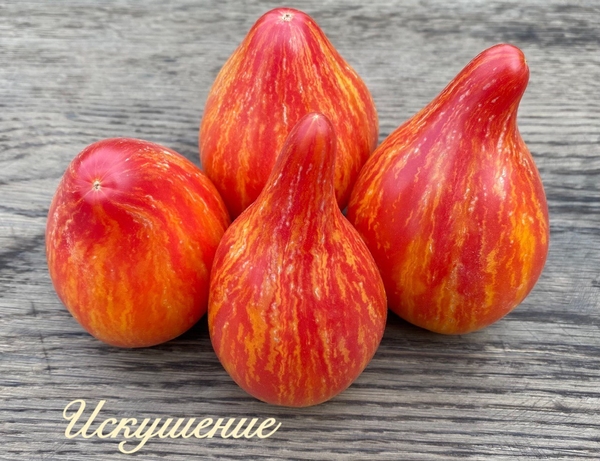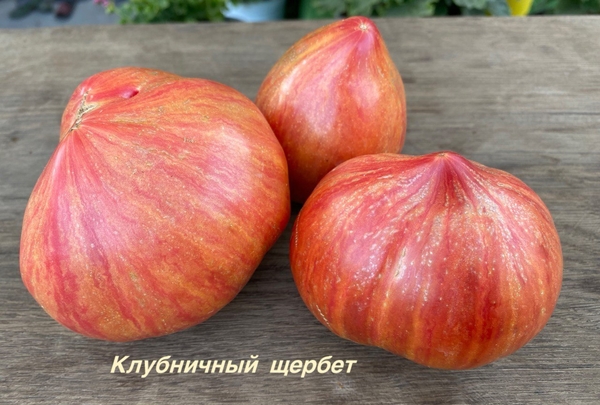 Высокорослый, среднеранний , плоды неповторимой формы и цвета, окраска - салют !!!Вес 150-300гр, на разрезе -вишнево - гранатовые, вкус концентрированный с усиленной сладостью !